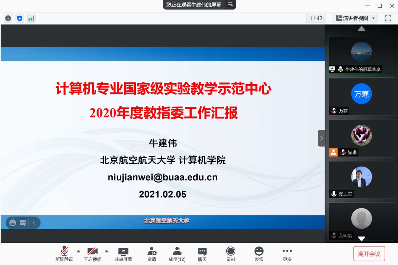 2021年2月5日,金年会jinnianhuicom计算机专业国家级实验教学示范中心教学指导委员会视频会议顺利召开。计算机专业国家级实验教学指导委员会专家和示范中心骨干成员参加了此次会议。会议由示范中心主任牛建伟教授主持。